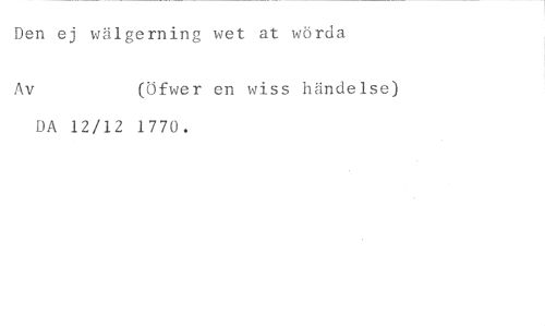 Den ej wälgerning wet at wörda //// Av (Öfwer en wiss händelse) //// DA 12/12 1770.