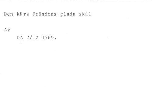 Den kära Frändens glada skäl //// Av //// DA 2/12 1769.