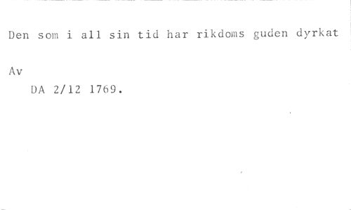 Den som i all sin tid har rikdoms guden dyrkat //// Av //// DA 2/12 1769.