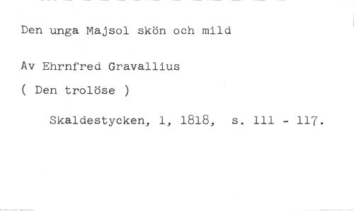 Den unga Majsol skön och mild //// Av Ehrnfred Gravallius ( Den trolöse ) //// Skaldestycken, 1, 1818, s. 111 - 117.