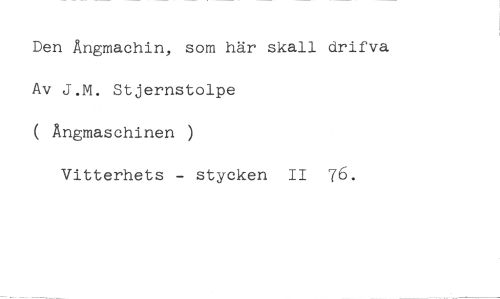 Den Ångmachin, som här skall drifva Av J.M. Stjernstolpe //// ( Ångmaschinen ) //// Vitterhets - stycken II 76.