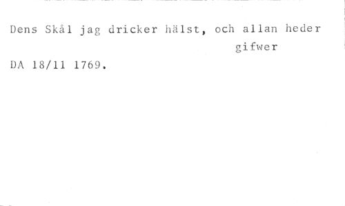 Dens Skål jag dricker hälst, och allan heder //// gifwer //// DA 18/11 1769.