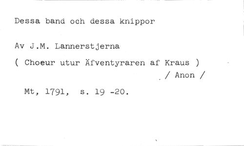Dessa band och dessa knippor Av J.M. Lannerstjerna //// ( Choeur utur Äfventyraren af Kraus ) //// / Anon / ////Mt, 1791, s. 19 -20.