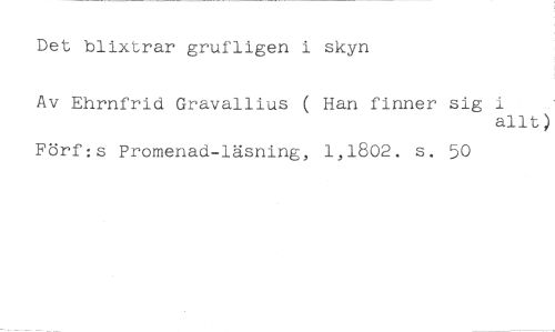 Det blixtrar grufligen i skyn //// Av Ehrnfrid Gravallius ( Han finner sig i //// allt) //// Förf:s Promenad-läsning, 1,1802. s. 50