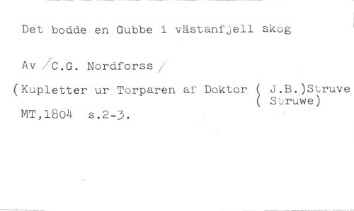 Det bodde en Gubbe i västanfjell skog Av C.G. Nordforss //// (Kupletter ur Torparen af Doktor ( J.B.)Struve //// ( SUruWe) //// MT,1804 s.2-3.
