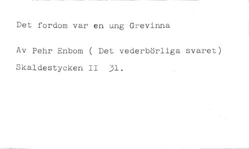 Det fordom var en ung Grevinna //// Av Pehr Enbom ( Det vederbörliga svaret) Skaldestycken II 31.