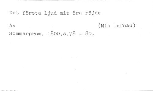 Det första ljud mit öra röjde //// Av (Min lefnad) //// Sommarprom. 1800,s.78 - 80.