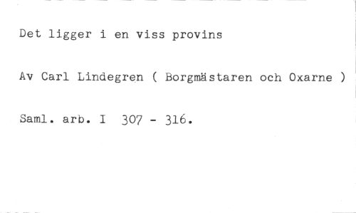 Det ligger i en viss provins //// Av Carl Lindegren ( Borgmästaren och Oxarne ) Saml. arb. I 307 - 316.