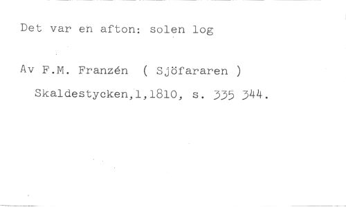 Det var en afton: solen log //// Av F.M. Franzén ( Sjöfararen ) Skaldestycken,1,1810, s. 335 344.