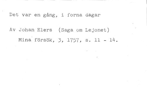 Det var en gång, i forna dagar //// Av Johan Elers (Saga om Lejonet) Mina försök, 3, 1757, s. 11 - 14.