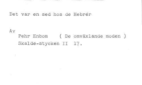 Det var en sed hos de Hebrer //// Av //// Pehr Enbom ( De omväxlande moden ) //// Skalde-stycken II 17.