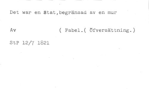 Det war en Stat,begränsad av en mur //// Av ( Fabel.( öfversättning.) //// StP 12/7 1821