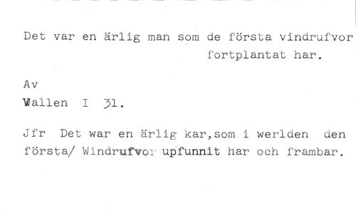 Det var en ärlig man som de första vindrufvor //// fortplantat har. //// Av //// Vallen I 31. //// Jfr Det war en ärlig kar,som i werlden den första/ Windrufvo upfunnit har och frambar.