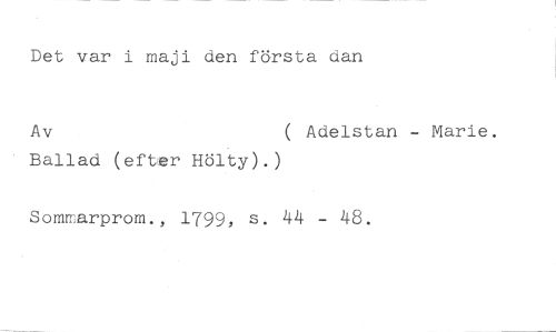 Det var i maji den första dan //// Av ( Adelstan - Marie. //// Ballad (efter Hölty).) //// Sommarprom., 1799, s. 44 - 48.