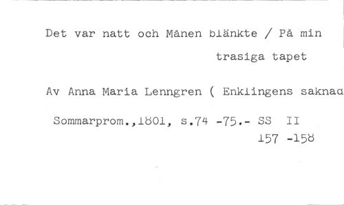 Det var natt och Månen blänkte / På min //// trasiga tapet //// Av Anna Maria Lenngren ( Enklingens saknaa //// Sommarprom.,1801, s.74 -75.- SS II //// 157 -15ö