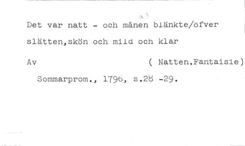 Det var natt - och månen blänkte/öfver slätten,skön och mild och klar //// Av ( Natten.Fantaisie) //// Sommarprom., 179b, s.23 -29.