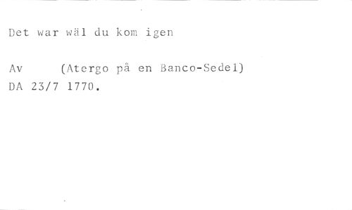 Det war wäl du kom igen //// Av (Atergo på en Banco-Sedel) //// DA 23/7 1770.