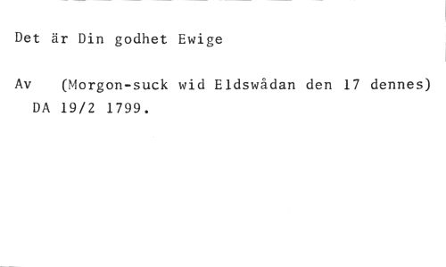 Det är Din godhet Ewige //// Av (Morgon-suck wid Eldswådan den 17 dennes) //// DA 19/2 1799.