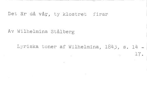 Det är då vå', ty klostret firar Av Wilhelmina Stålberg //// Lyriska toner af Wilhelmina, 184J, s. 14 - //// 17.