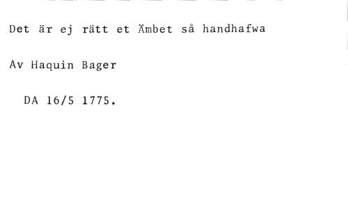 Det är ej rätt et Ämbet så handhafwa //// Av Haquin Bager //// DA 16/5 1775.