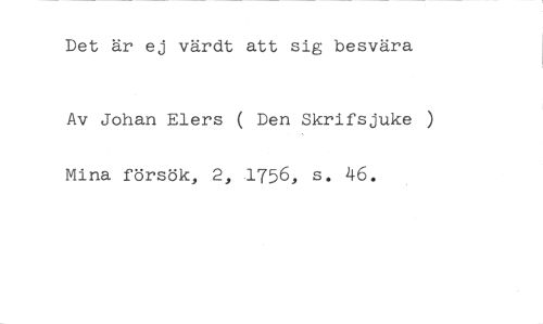Det är ej värdt att sig besvära //// Av Johan Elers ( Den Skrifsjuke ) //// Mina försök, 2, 1756, s. 46.