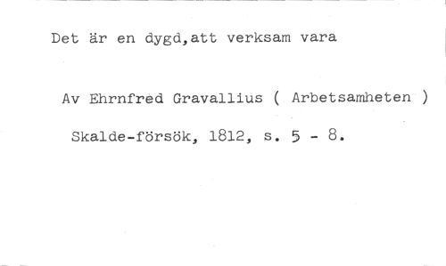Det är en dygd,att verksam vara //// Av Ehrnfred Gravallius ( Arbetsamheten ) Skalde-försök, 1812, s. 5 - 8.