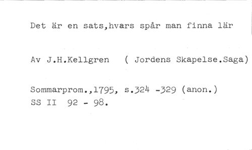 Det är en sats,hvars spår man finna lär //// Av J.H.Kellgren ( Jordens Skapelse.Saga) //// Sommarprom.,1795, s.324 -329 (anon.) SS II 92 - 98.