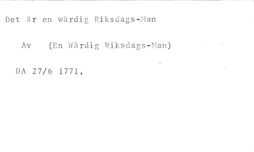 Det är en wärdig Riksdags-Man //// Av (En -wärdig Riksdags-Man) //// DA 27/6 1771.