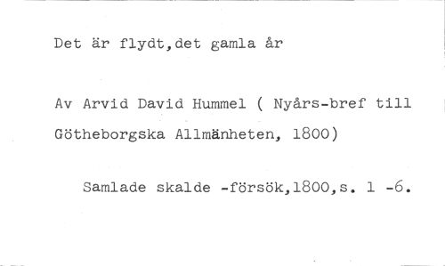 Det är flydt,det gamla år //// Av Arvid David Hummel ( Nyårs-bref till Götheborgska Allmänheten, 1800) //// Samlade skalde -försök,1800,s. 1 -6.
