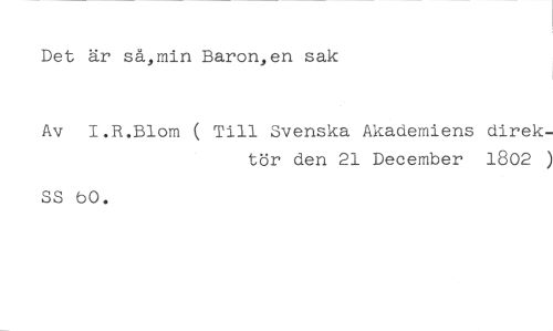 Det är sä,min Baron,en sak //// Av I.R.Blom ( Till Svenska Akademiens direk- //// tör den 21 December 1802 ) //// SS OO.