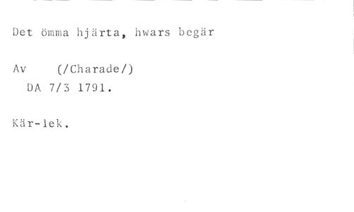 Det ömma hjärta, hwars begär //// Av (/Charaden //// DA 7/3 1791. //// Kär-lek.