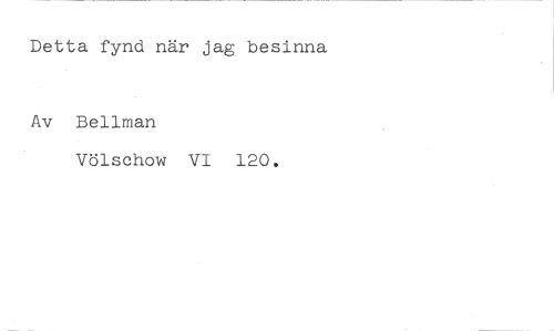 Detta fynd när jag besinna //// Av Bellman //// Völschow VI 120.
