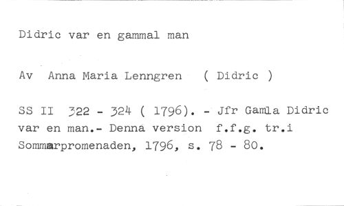 Didric var en gammal man //// Av Anna Maria Lenngren ( Didric ) //// SS II :522 - 324 ( 1796). - Jfr Gamla Didric var en man.- Denna version f.f.g. tr.i. Sommarpromenaden, 1796, s. 78 - 80.