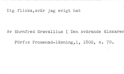 Dig flicka,svär jag evigt hat //// Av Ehrnfred. Gravallius ( Den svärande älskaren Förf:s Promenad-läsning,l, 1802, s. 70.