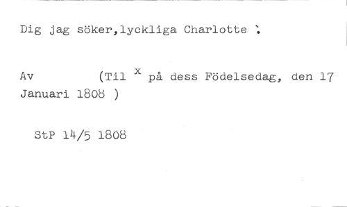 Dig jag söker,lyckliga Charlotte //// Av (Til X på dess Födelsedag, den 17 //// Januari 1808 ) //// StP 14/5 1808