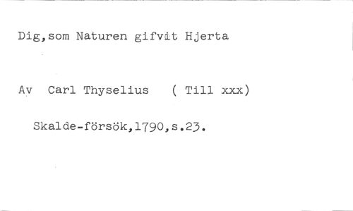 Dig,som Naturen gifvit Hjerta //// Carl Thyselius ( Till xxx) //// Skalde-försök,1790,s.23.