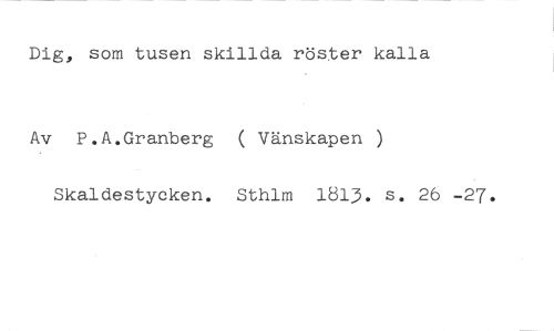 Dig, som tusen skillda röster kalla //// Av P.A.Granberg ( Vänskapen ) //// Skaldestycken. Sthlm 1813. s. 26 -27.