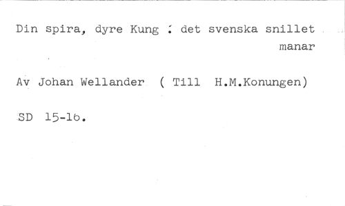 Din spira, dyre Kung : det svenska snillet //// manar //// Av Johan Wellander ( Till H.M.Konungen) BD 15-ib.