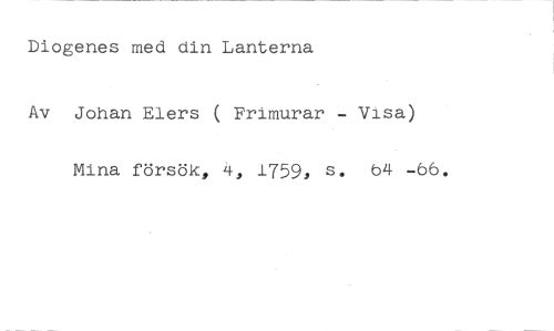 Diogenes med din Lanterna //// Av Johan Elers ( Frimurar - Visa) Mina försök, 4, 1759, s. b4 -66.