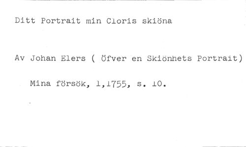 Ditt Portrait min Claris skiöna //// Av Johan Elers ( Öfver en Skiönhets Portrait) //// Mina försök, 1,1755, s. 10.