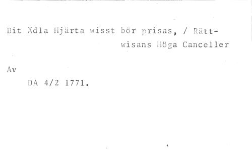 Dit Ädla Hjärta wisst bör prisas, / Rätt- //// wisans Höga Canceller //// Av //// DA 4/2 1771.