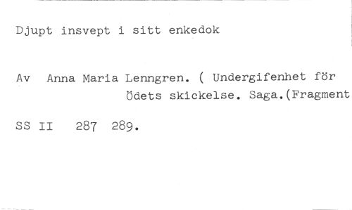 Djupt insvept i sitt enkedok //// Av Anna Maria Lenngren. ( Undergifenhet för Ödets skickelse. Saga.(Fragment //// SS II 287 289.