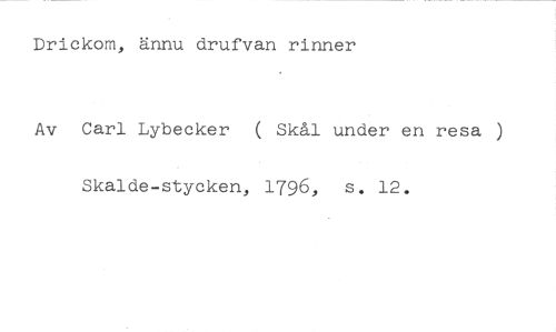 Drickom, ännu drufvan rinner //// Av Carl Lybecker ( Skål under en resa ) //// Skalde-stycken, 1796, s. 12.