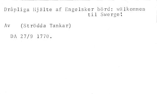 Dråpliga Hjälte af Engelsker börd: wälkommen //// til Swerge! //// Av (Strödda Tankar) //// DA 27/9 177( //// •