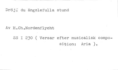 Dröj: du ängslefulla stund //// Av H.Ch.Nordenflycht //// SS 1230 ( Versar efter musicalisk compo- //// sition: Aria ).