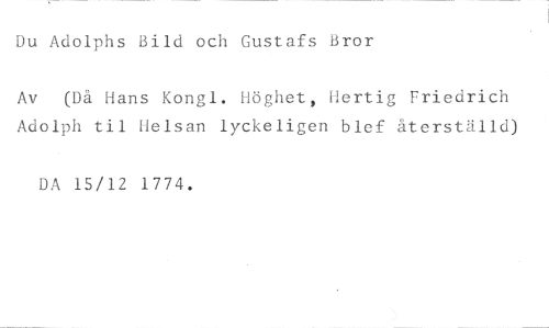 Du Adolphs Bild och Gustafs Bror //// Av (Då Hans Kongi. Höghet, Hertig Friedrich Adolph til Helsan lyckeligen blef återställd) //// DA 15/12 1774.