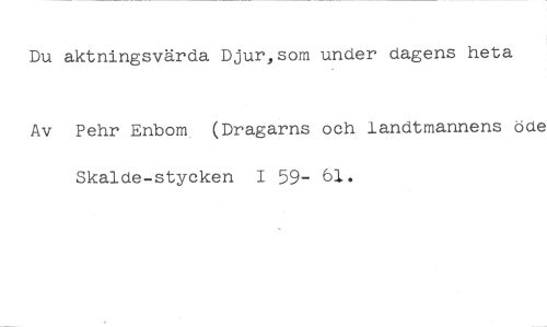 Du aktningsvärda Djur, som under dagens heta //// Av Pehr Enbom, (Dragarns och landtmannens öde Skalle-stycken 159- 61.