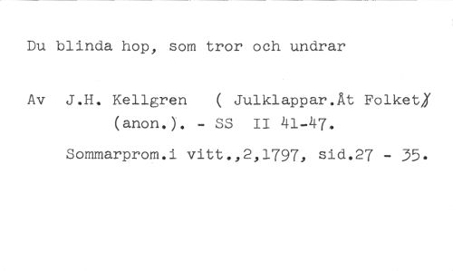 Du blinda hop, som tror och undrar //// Av J.H. Kellgren ( Julklappar.Åt Folket% //// (anon.). - SS II 41-47. //// Sommarprom.i vitt.,2,1797, sid.27 - 35.