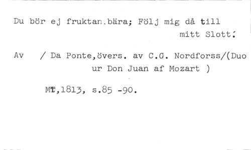 Du bör ej fruktan bära; Följ mig då till //// mitt Slott: //// Av / Da Ponte,övers. av C.G. Nordforss/(Duo //// ur Don Juan af Mozart ) //// MT,1813, s.85 -90.
