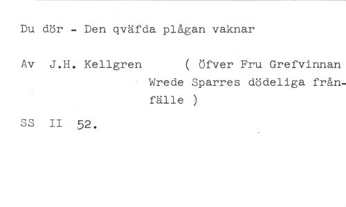 Du dör - Den qväfda plågan vaknar //// Av J.H. Kellgren ( öfver Fru Grefvinnan //// Wrede Sparres dödeliga frånfälle //// SS II